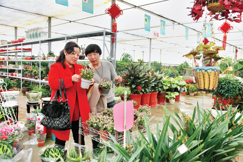 2月16日,市民在忻州城區(qū)七一南路的“陳紅花卉”批發(fā)市場(chǎng)選購(gòu)花卉?!岸拘袆?dòng)”開展以來,忻府區(qū)發(fā)揮區(qū)位優(yōu)勢(shì),大力扶持發(fā)展特色觀賞農(nóng)業(yè),為農(nóng)民增收挖掘新的經(jīng)濟(jì)增長(zhǎng)點(diǎn)。春節(jié)期間,一批像“陳紅花卉”大棚一樣的花卉種植戶獲得了較高的經(jīng)濟(jì)收入。(侯睿 攝)
