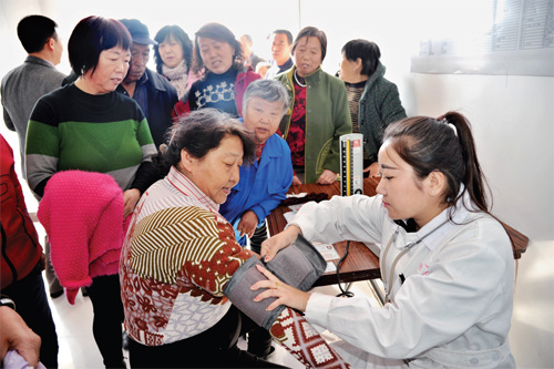 3月7日上午,代縣團(tuán)縣委在上館鎮(zhèn)橙草溝村舉行“傳承雷鋒精神,投身脫貧攻堅(jiān)”志愿服務(wù)活動啟動儀式,旨在動員全縣各級團(tuán)組織和廣大團(tuán)員青年開展為期一個月的以“傳承雷鋒精神,投身脫貧攻堅(jiān)”為主題的“送溫暖、獻(xiàn)愛心”、“送金融”、“送科技”、“送文明健康”系列學(xué)雷鋒志愿服務(wù)活動。啟動儀式現(xiàn)場,共收到全縣捐贈的課桌凳1900套、圖書1126冊、文具320件、衣物1063件、書包33個、體育用品14件,將分發(fā)到貧困地區(qū)農(nóng)村和學(xué)校。圖為志愿者為民群眾義診。(石俊文 攝)