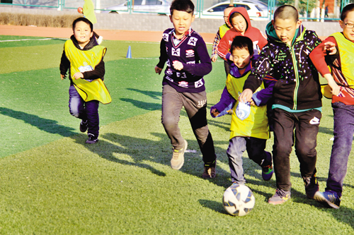 3月12日,原平農(nóng)校足球場內(nèi),小球迷正在進行對抗訓練。從小培養(yǎng)兒童熱愛運動,熱愛足球,已成為時下一種教育理念。周末節(jié)假日兒童不再上各種培訓班,踢足球,增體質(zhì),堅定自信心,已成為一種習慣:我運動,我健康,我是最棒的!(吉建平 攝)