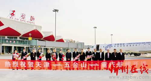 3月27日下午17時(shí)左右,由華夏航空公司CRJ900型飛機(jī)執(zhí)飛的G52785航班降落在五臺(tái)山機(jī)場(chǎng),這標(biāo)志著天津—五臺(tái)山—重慶航線正式開(kāi)通,首航航班往返客座率均超過(guò)95%。該航線每周4班,周一、三、五、日各往返飛行一班。重慶—五臺(tái)山—天津時(shí)刻為:重慶14時(shí)45分起飛,17時(shí)05分抵達(dá)五臺(tái)山機(jī)場(chǎng),18時(shí)55分從五臺(tái)山起飛,19時(shí)35分抵達(dá)天津;天津—五臺(tái)山—重慶時(shí)刻為:天津20時(shí)30分起飛,21時(shí)20分抵達(dá)五臺(tái)山機(jī)場(chǎng),22時(shí)00分從五臺(tái)山機(jī)場(chǎng)起飛,00時(shí)15分抵達(dá)重慶。另外,海口—五臺(tái)山的航線從3月27日起調(diào)整為??凇鹆帧迮_(tái)山。(趙夢(mèng)嬌 攝)