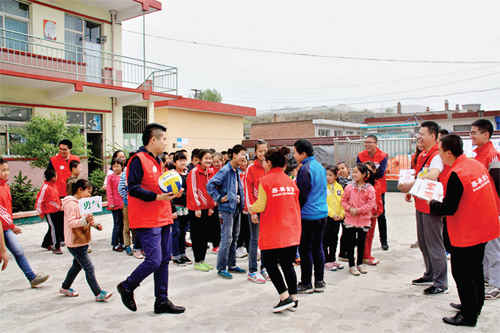 近日,太原市善林金融30 余名志愿者來到靜樂縣西會中心小學(xué),開展關(guān)愛留守兒童志愿服務(wù)活動,為孩子們送去了排球、羽毛球、跳繩、乒乓球臺等體育用品和設(shè)備,并與孩子們分享了中國女排頑強(qiáng)拼搏的故事,鼓勵(lì)孩子們自強(qiáng)不息、快樂成長。(劉盛甫 攝)