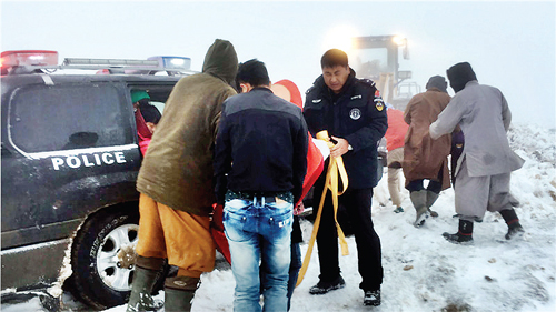 近日五臺山降雪 巡特警救助朝臺遇困游客