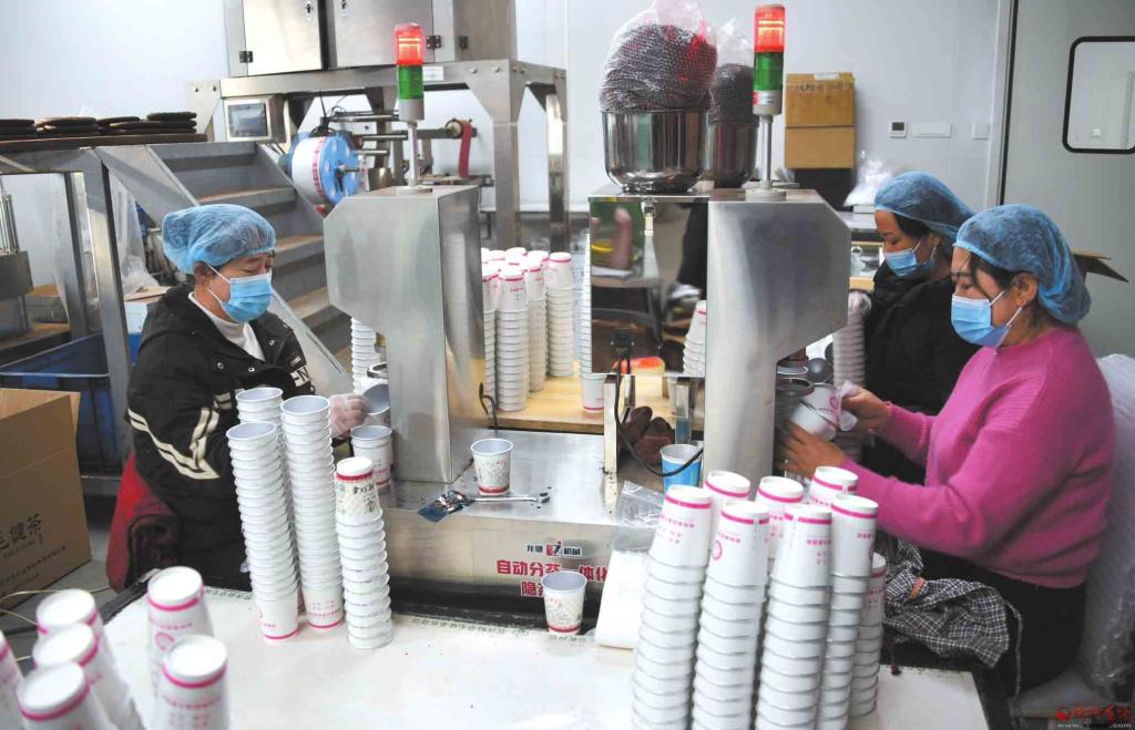 12月6日,寧武縣管涔仙草特色農(nóng)業(yè)科技開發(fā)有限公司的工人正在包裝毛健茶。該企業(yè)在傳統(tǒng)手工制茶工藝的基礎(chǔ)上,創(chuàng)新融入現(xiàn)代工藝技術(shù),大力打造品牌產(chǎn)品,既提升了產(chǎn)品附加值,也帶動(dòng)了當(dāng)?shù)剞r(nóng)戶增收和縣域產(chǎn)業(yè)振興。(本報(bào)記者劉紀(jì)森攝)