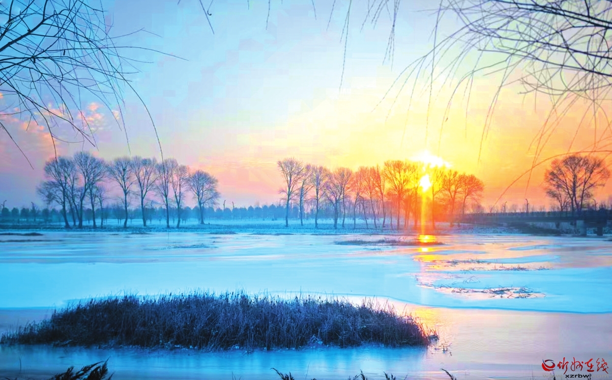 牧馬河公園的雪,則是城市里的小確幸。柳樹(shù)的枝條裹著雪,像銀條般垂落。湖面結(jié)著薄冰,倒映著岸邊的雪樹(shù),一派祥和景象。老人們?cè)谘┖蟮男缴仙⒉?,孩子們追跑打鬧,堆起憨態(tài)可掬的雪人,偶爾傳來(lái)的歡笑聲,讓整個(gè)公園都充滿(mǎn)了生機(jī)。
