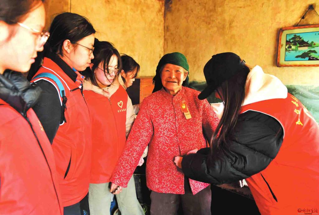 近日,五臺(tái)縣志愿者協(xié)會(huì)協(xié)同工業(yè)園社區(qū)志愿者和大學(xué)生志愿者,帶著精心準(zhǔn)備的年貨,走進(jìn)溝南鄉(xiāng)翟子溝村、東雷鄉(xiāng)東山底村、陳家莊鄉(xiāng)王城村等地,看望慰問(wèn)十二戶(hù)孤寡老人和困難家庭,向他們送上社會(huì)各界的關(guān)懷和新春的溫暖祝福。圖為志愿者為腿腳不便的高齡老人試穿新衣服。(盧俊華 攝)