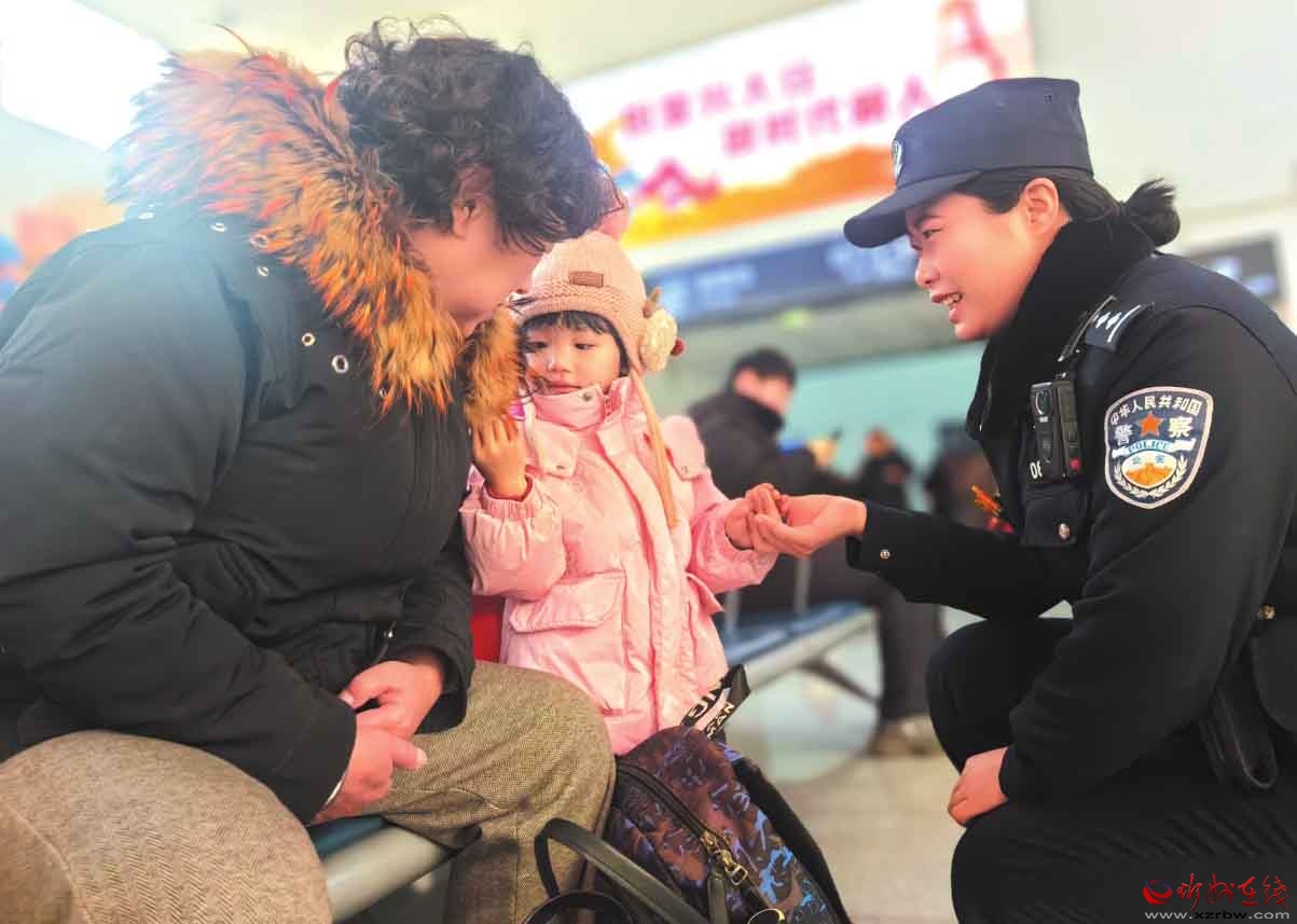 春運以來,忻州站派出所全體民警嚴(yán)格落實工作部署要求,壓實崗位責(zé)任,強化安檢查危,維護站車乘降秩序,確保春運安全有序、旅客出行平安順暢。(張月琴攝) (責(zé)任編輯:盧相?。?/span> |