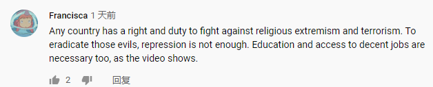 “任何國(guó)家都有權(quán)利和義務(wù)打擊宗教極端主義和恐怖主義。要根除這些邪惡……教育和獲得體面工作的機(jī)會(huì)也是必要的?!苯眨幻M饩W(wǎng)友Francisca在看完中央廣播電視總臺(tái)旗下CGTN播出的《巍巍天山——中國(guó)新疆反恐記憶》紀(jì)錄片后這樣評(píng)價(jià)。