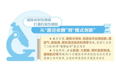 截至目前,聚焦半導(dǎo)體、碳基新材料、信息技術(shù)應(yīng)用創(chuàng)新、煤層氣、新能源、煤炭清潔高效利用等領(lǐng)域,我省已支持了3批40項(xiàng)“揭榜掛帥”重點(diǎn)項(xiàng)目,省財政引導(dǎo)資金2億元,帶動企業(yè)投資7億元。與此同時,涵蓋能源、大數(shù)據(jù)、煤機(jī)智能制造、通用航空等領(lǐng)域45個關(guān)鍵技術(shù)和共性技術(shù)攻關(guān)項(xiàng)目指南已對外發(fā)布,正組織研發(fā)團(tuán)隊開展技術(shù)攻關(guān)。