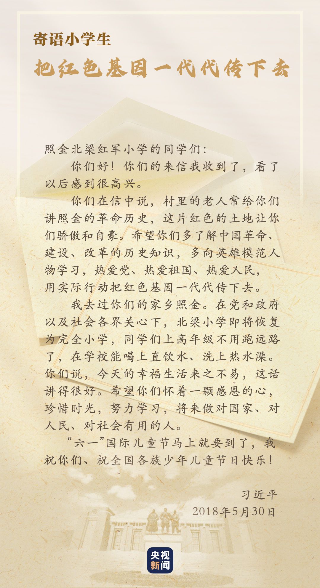校舍變新了,師資變強了,不變的是代代相傳的紅色基因??倳浀幕匦牛钪@里的孩子傳承紅色基因,回報社會,用光熱溫暖更多人,把愛傳遞出去。