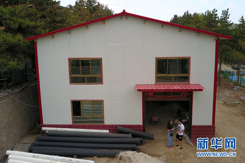 在東鄉(xiāng)族自治縣標(biāo)準(zhǔn)化食品生產(chǎn)加工車間建設(shè)現(xiàn)場(chǎng),馬娟(左)和朋友商量公司規(guī)劃。(資料圖)新華社記者 范培珅 攝