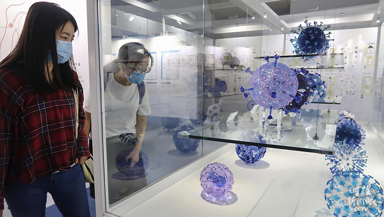 △“命運(yùn)與共,攜手抗疫——科技與健康同行”主題展覽7月在上??萍拣^開幕,這是展覽現(xiàn)場。