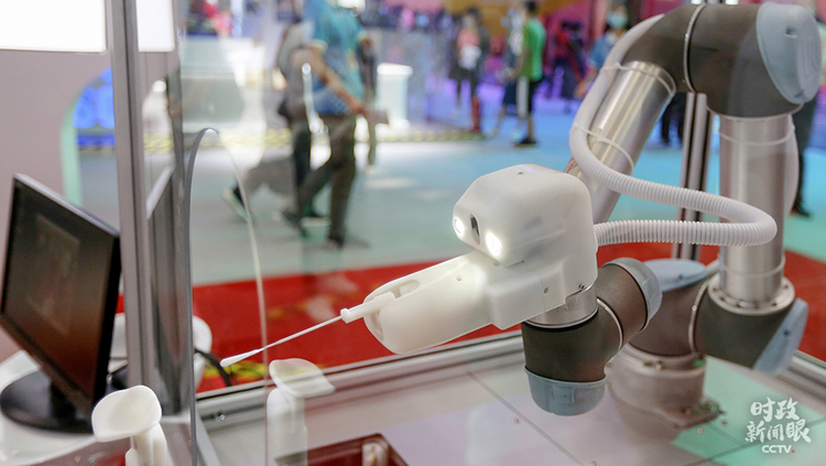 △在今年服貿(mào)會上亮相的咽拭子采樣機(jī)器人。