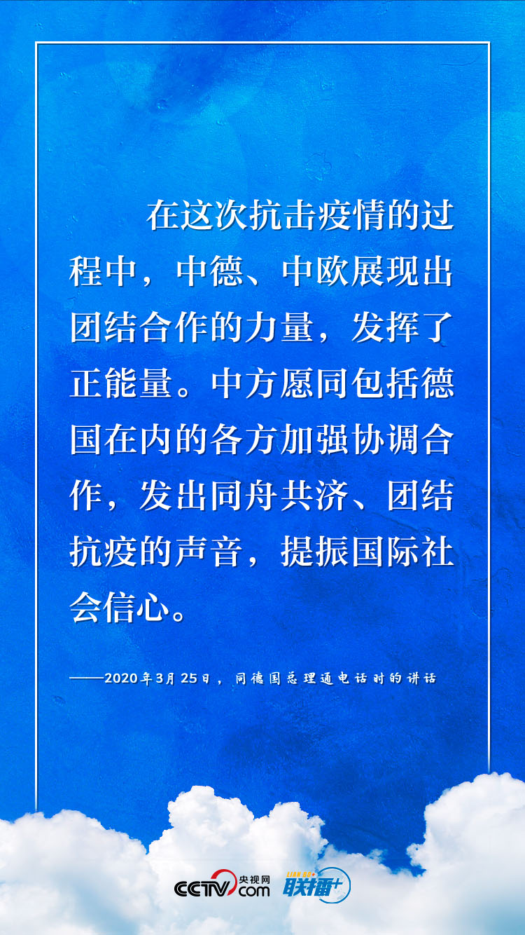 新冠肺炎疫情暴發(fā)以來,中國和德國、歐盟相互支持、相互幫助。習近平主席多次與德歐領(lǐng)導人開展“云外交”,闡明加強合作的重要性。