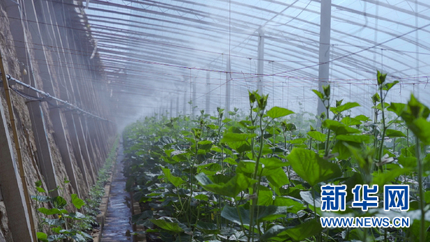 蔬菜大棚內(nèi),正在進(jìn)行霧化澆水。新華網(wǎng)發(fā) (尹杰 攝)