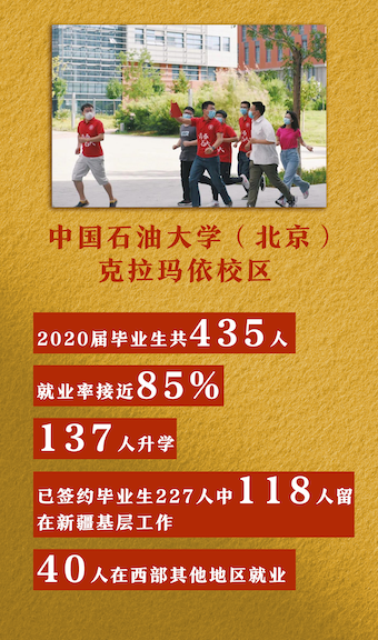 2020年7月7日,習(xí)近平給中國(guó)石油大學(xué)(北京)克拉瑪依校區(qū)118名畢業(yè)生回信,肯定了他們“奔赴新疆基層工作,立志同各族群眾一起奮斗,努力成為可堪大用、能擔(dān)重任的西部建設(shè)者”的人生選擇。
