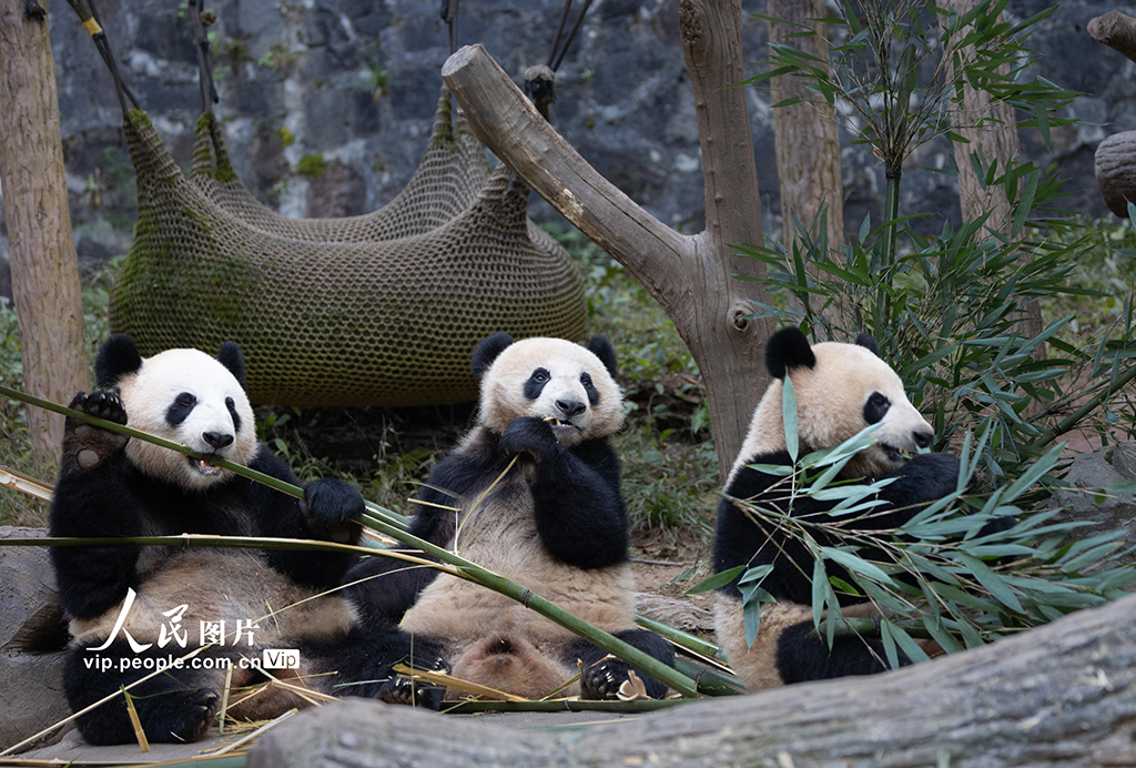 2025年12月1日,四川省都江堰市中國大熊貓保護(hù)研究中心都江堰青城山基地,大熊貓享用美食、嬉戲玩耍,憨態(tài)可掬,惹人喜愛。陳先林?jǐn)z(人民圖片網(wǎng))