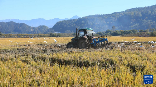 12月7日,云南省騰沖市和順鎮(zhèn)大莊村農(nóng)民駕駛農(nóng)機(jī)翻耕稻田,準(zhǔn)備種植冬季馬鈴薯。(新華社發(fā) 龔祖金 攝)
