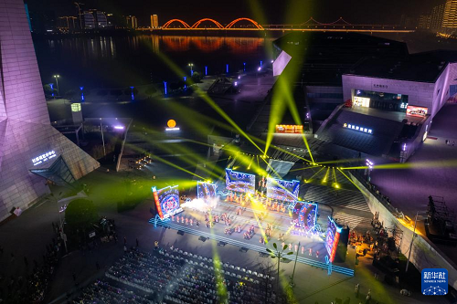 12月9日拍攝的2025年湖南“歡樂(lè)瀟湘”優(yōu)秀群眾文藝作品展演活動(dòng)現(xiàn)場(chǎng)(無(wú)人機(jī)照片)。(新華社記者 陳思汗 攝)