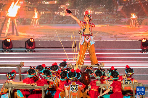 12月9日晚,演員在展演活動(dòng)上演唱《撮珠朵·嫁》。(新華社記者 陳思汗 攝)