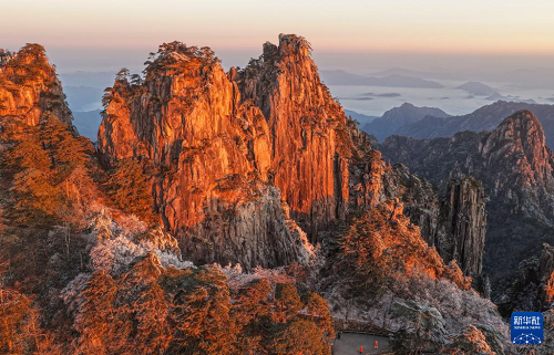 12月14日在安徽省黃山風(fēng)景區(qū)拍攝的雪后日出美景。(新華社發(fā) 施亞磊 攝)