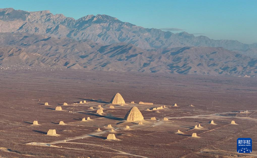 12月28日清晨拍攝的西夏陵(無(wú)人機(jī)照片)。(新華社發(fā) 袁宏彥 攝)