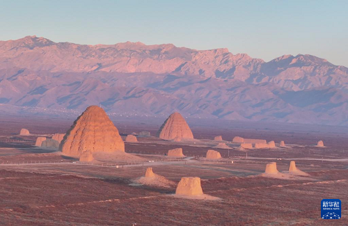 寒冬時(shí)節(jié),晨曦中的西夏陵與繽紛霞光及峰巒疊嶂的賀蘭山共同形成雄偉壯麗的景觀。