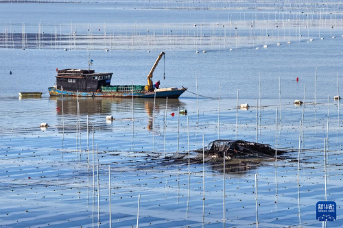 眼下,江蘇連云港市海州灣漁場養(yǎng)殖區(qū)的頭茬條斑紫菜迎來收獲時節(jié),“海上菜園”到處都是搶收紫菜的繁忙景象。