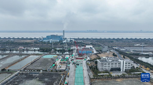 1月20日拍攝的錢塘江高鐵盾構(gòu)隧道施工現(xiàn)場(chǎng)(無(wú)人機(jī)照片)。(新華社發(fā) 王欣 攝)