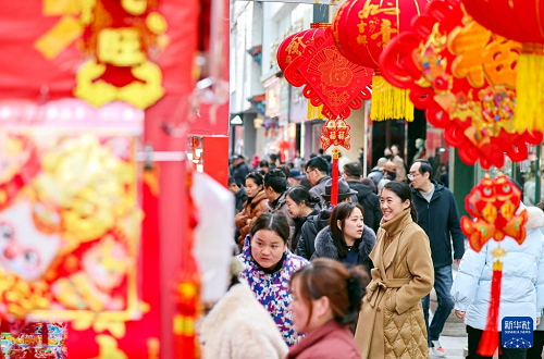 2月5日,人們?cè)诟拭C省蘭州市城關(guān)區(qū)張掖路年貨市場選購年貨。(新華社發(fā) 侯崇慧 攝)