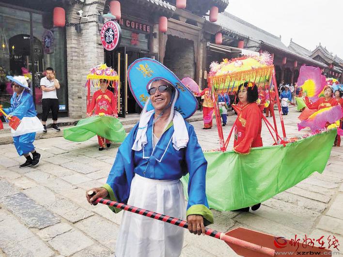 漫步在忻州古城街頭,一個個具有濃厚地方文化特色的表演節(jié)目,如五臺秧歌、巾幗鼓舞、五臺山佛樂、旱船表演等輪番上演,讓游忻州古城的市民和外地游客深深領略到了五臺的風土人情,近距離感受到了五臺縣非物質(zhì)文化遺產(chǎn)的魅力和特色文化旅游資源的風采。