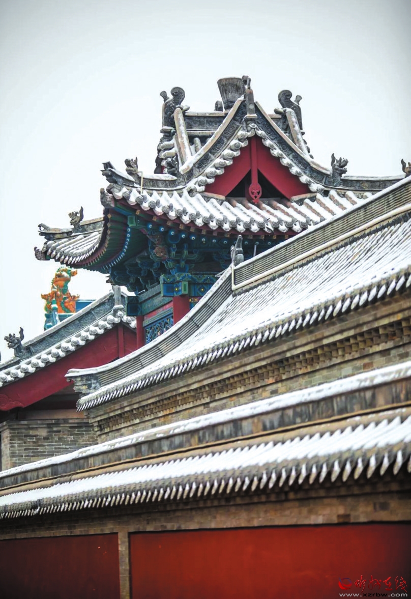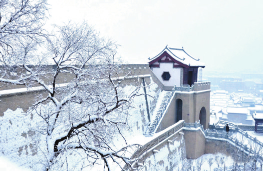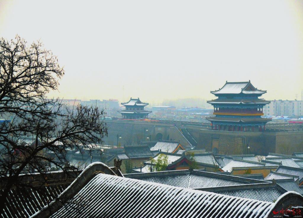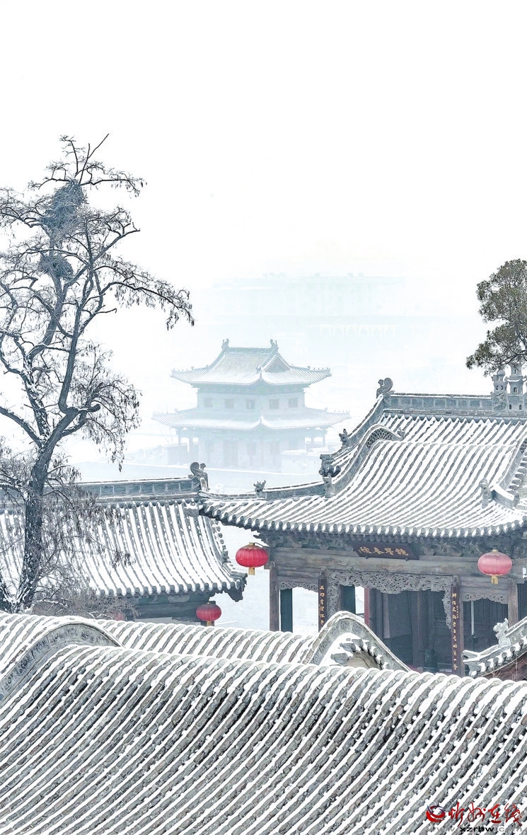 冬天一定要來忻州古城,因?yàn)檫@里的風(fēng)光大不一樣——它寒冷、莊嚴(yán),與遠(yuǎn)處的系舟山連成一片,煙波朦朧;它黯淡、粗獷,與整個(gè)北方的豪邁自成一體,氣勢(shì)磅礴。它就像這雪,能給人帶去希冀。雪安,忻州古城。