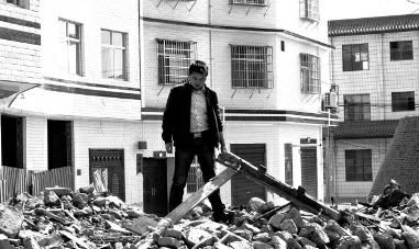 華商報記者在事發(fā)地看到,小汪家的房子變成了廢墟,門窗還殘留在廢墟中,幾棵大樹被連根推倒,橫七豎八地倒在廢墟上?!胺孔印⒇i圈、廁所原來都在這,現(xiàn)在被磚塊壓著啥也看不到了?!闭驹趶U墟上,小汪說,房屋被推倒前,沒有任何人給他打招呼,他家也沒有和鎮(zhèn)政府簽訂任何征遷協(xié)議。