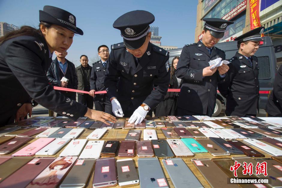 3月2日,山西太原警方發(fā)還民眾被盜手機。近日,太原市公安局偵破一個手機扒竊犯罪團伙,破獲案件200余起,追繳手機180余部。張云 攝