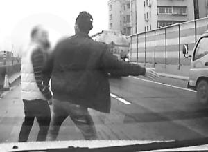在郭先生轎車的行車記錄儀的錄像中,郭先生拿著手機(jī)站在車頭,另外兩名男子也跟了上來,雙方隨后發(fā)生言語(yǔ)沖突,其中一名身穿黑色外套的男子更是動(dòng)手拍打郭先生的臉部,隨后,郭先生還被黑衣男子推打。