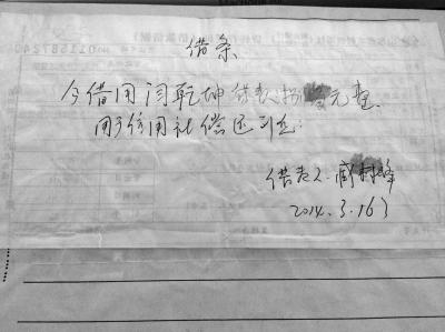 臧林峰給閆乾坤出具的“借條”。