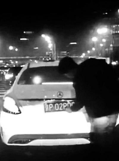 白色奔馳車司機(jī)鬧市調(diào)換車牌,不想被人全程拍攝了下來