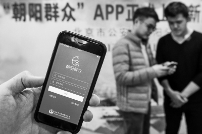 昨天,在北京市公安局朝陽(yáng)分局舉行的新聞發(fā)布會(huì)后,市民體驗(yàn)“朝陽(yáng)群眾”APP。記者 鄧偉攝