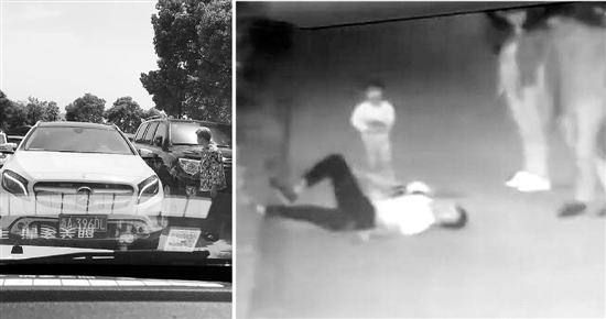 “沒想到,那女的二話不說,沖上來就很重地推了我一把。我想還手,又覺得不合適,就開始拿出手機來錄像取證,才錄了八九秒鐘,就有人過來把手機打掉了,中間還聽到他們家的小孩也在罵我。緊接著那男的就沖上來了,說了一句大致意思是‘你小毛頭一個,我一下就把你拎起來’,感覺他話沒說完,我就被他抓起來扔到地上了。”