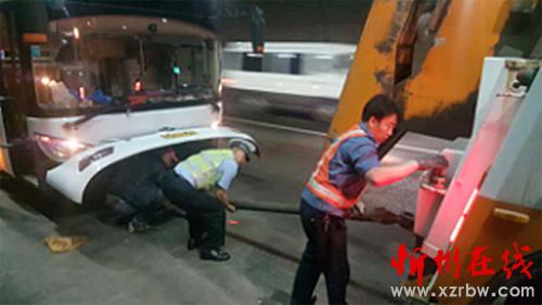2017年5月20日14時30分許,高速二支隊九大隊巡邏民警翟躍、郭騏源在巡邏至五保高速鳳凰嶺隧道忻州方向時,發(fā)現(xiàn)一輛大巴車停在應(yīng)急車道上,其中部分車身騎壓在行車道上,隧道旁邊站滿了人,考慮到正處國際旅游日的返程高峰時段,路面車流量較大,極易引發(fā)二次事故,造成人員傷亡,巡邏民警一方面抓緊開始做好防護(hù)設(shè)施,一方面上前了解情況,得知這輛大巴車是從五臺山去往河南方向,車上拉了40多名平均年齡五十歲左右的中老年游客,因發(fā)動機(jī)出了故障壞在路上。