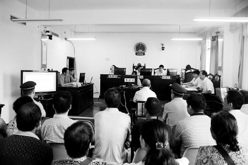 西峽縣法院開庭審判楊振浩(中) 汪宇堂 張宇攝