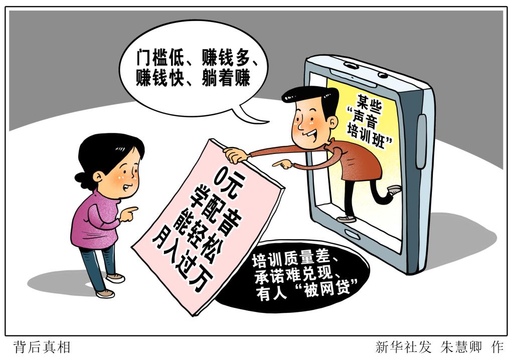 新華社記者發(fā)現(xiàn),有些商家乘機(jī)在網(wǎng)絡(luò)平臺(tái)推銷各類“聲音培訓(xùn)班”。有些培訓(xùn)班大多先以“免費(fèi)專業(yè)聲音培訓(xùn)”“幫聯(lián)系高收入兼職”等承諾招攬學(xué)員,但學(xué)員們?cè)诟邇r(jià)購(gòu)買課程后,并未能實(shí)現(xiàn)廣告所稱“輕松月入過(guò)萬(wàn)”“培訓(xùn)完保障就業(yè)”,有的甚至還背上網(wǎng)貸。