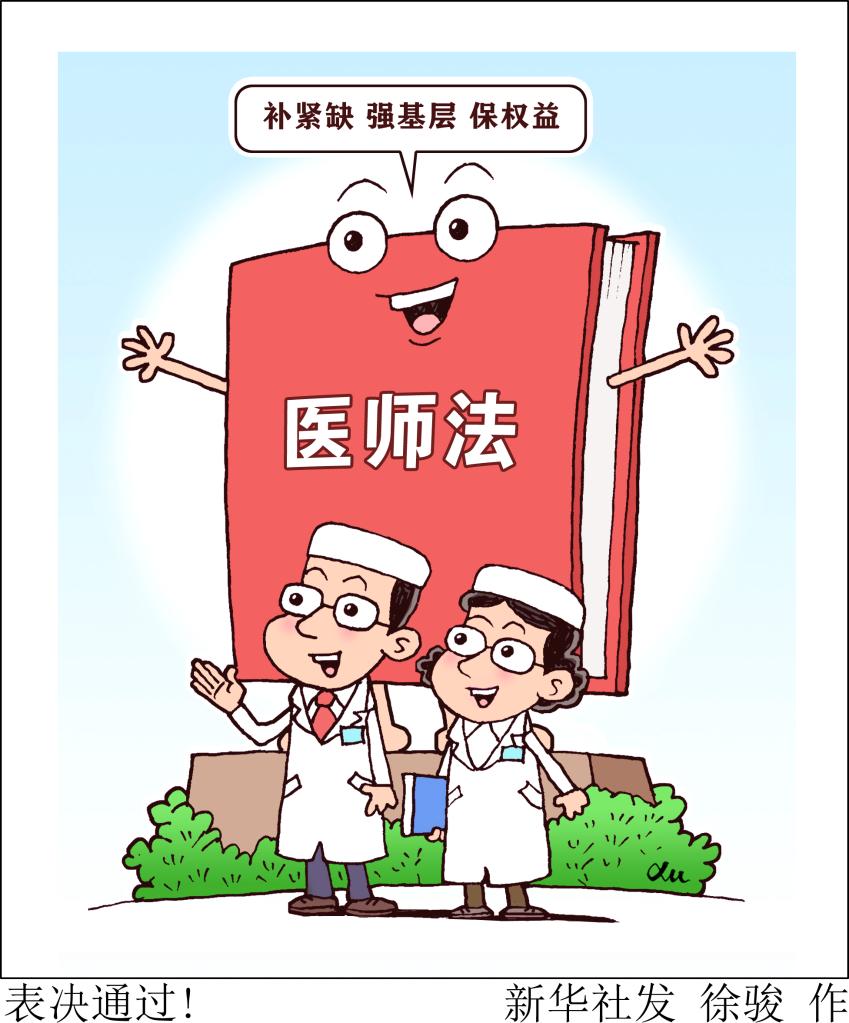 醫(yī)師是護(hù)佑人民健康的守門人。十三屆全國人大常委會(huì)第三十次會(huì)議2021年8月20日表決通過的醫(yī)師法,于2022年3月1日起施行。新華社發(fā) 徐駿 作