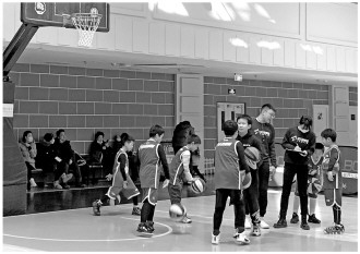2月26日,北京市海淀區(qū)某籃球培訓課上,孩子們在練習打籃球。