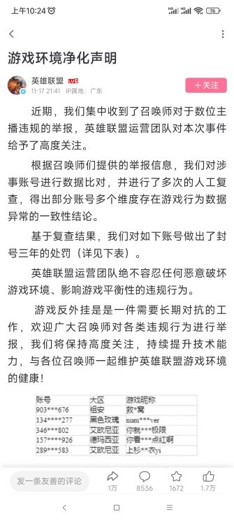 近日,英雄聯(lián)盟主播被質(zhì)疑使用腳本鬧得沸沸揚揚。在經(jīng)歷網(wǎng)友錄屏鑒定、主播自證辯解后,英雄聯(lián)盟官方下場,通過技術(shù)手段多重復查,幾位大主播求錘得錘終于被封號三年,大快人心。