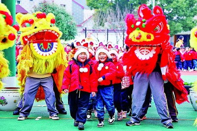 浙江省長興縣李家巷鎮(zhèn)中心幼兒園的孩子們參加“非遺進(jìn)園迎開學(xué)”主題活動(dòng)。新華社發(fā)