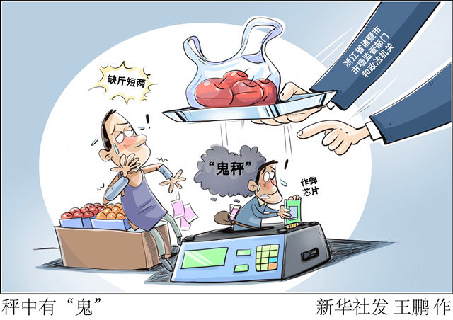 一臺小小的“鬼秤”,不僅侵害群眾合法權(quán)益,更有損公平誠信的市場環(huán)境。執(zhí)法部門要主動作為,為公序良俗撐腰,讓群眾利益得到保障;另一方面,遭遇缺斤短兩問題,消費(fèi)者也不要忍氣吞聲,多和不法現(xiàn)象“較真”:買完菜上“安心秤”復(fù)稱一下,對不法行為堅決舉報。大家合力,一起讓“鬼秤”無處遁形。