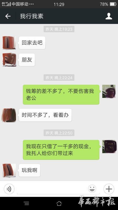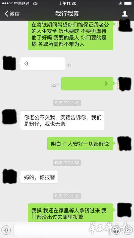 趙婷用微信與丈夫聯(lián)系,回復(fù)的人卻變成了“綁匪”,索要6萬元的贖金,否則撕票。趙婷說,一定會湊錢,但要保證王江的人生安全,不能虐待,各取所需都不為難人,“綁匪”卻一直逼問著錢的下落,并煞有其事地強調(diào)“不要報警”。