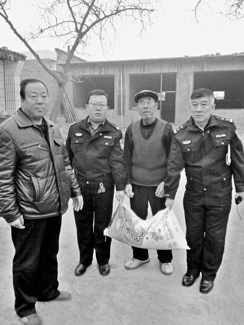 近年來,大隊把扶貧工作當作一項政治任務抓在手上,為了更好地精準扶貧,按計劃力爭提前完成扶貧攻堅任務。2015年,李晉生擔任了原平市南白鄉(xiāng)尚義村的第一書記,負責該村的幫扶工作。南白鄉(xiāng)尚義村是原平市的重點貧困村,也是交警大隊幫扶村,全村204人,貧困人口占80%。當年12月17日,他自籌2000多元,購買了米、面、糧、油,與大隊的4位民警來到了南白鄉(xiāng)尚義村走訪慰問特困家庭。在全市開展精準扶貧的攻堅階段,為了讓特困家庭度過溫暖的冬季,交警大隊民警進村入戶共慰問五保戶、特困戶8戶,為他們送去了面粉、大米和食用油。同時,大隊長還看望了90歲高齡的抗戰(zhàn)老兵趙書良,1925年出生的趙書良老人,17歲時就參軍,在抗日戰(zhàn)爭中多次立功授獎。當老人雙手接過慰問金后,激動地說:“還是共產(chǎn)黨好,人民警察和人民真是心連心??!”