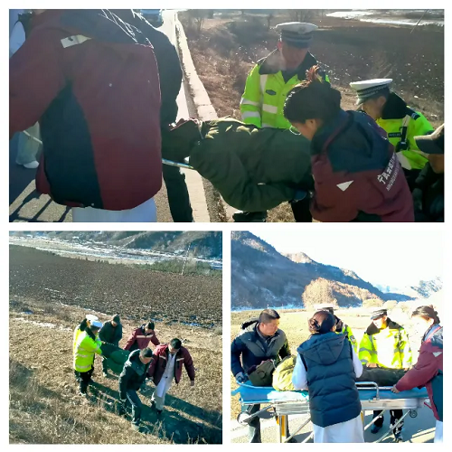 1月17日9時(shí)15分,寧武縣公安局交警大隊(duì)東寨中隊(duì)接到縣局110緊急指令,東黃線1KM+500處(窯子彎村附近)一輛農(nóng)用三輪車不慎墜入溝中,有人員受傷。接到指令后,中隊(duì)民輔警火速出動,趕赴事發(fā)地點(diǎn)實(shí)施救援處置。