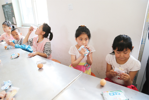 6 月23 日,靜樂(lè)縣中莊鄉(xiāng)中莊村小學(xué)學(xué)生正在吃領(lǐng)到的“營(yíng)養(yǎng)餐”。截至目前,該縣共有4所初中、32 所小學(xué)、40 個(gè)教學(xué)點(diǎn)的2391 名中小學(xué)生每天均可享受到農(nóng)村義務(wù)教育“營(yíng)養(yǎng)餐”所帶來(lái)的溫暖。(閆曉梅 攝)